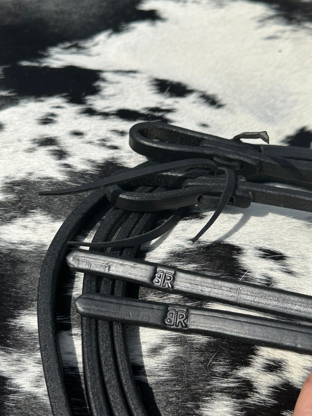 BRT Amish made black show reins with waterloop ends. Available in 1/2” or 5/8” width x 8’ long. Excellent quality.
