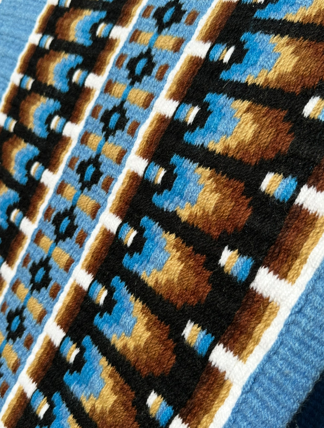 34 by 42 with stamped wear leathers. Please email us at backroadtradingcompany@gmail.com if you would like to custom order a blanket.