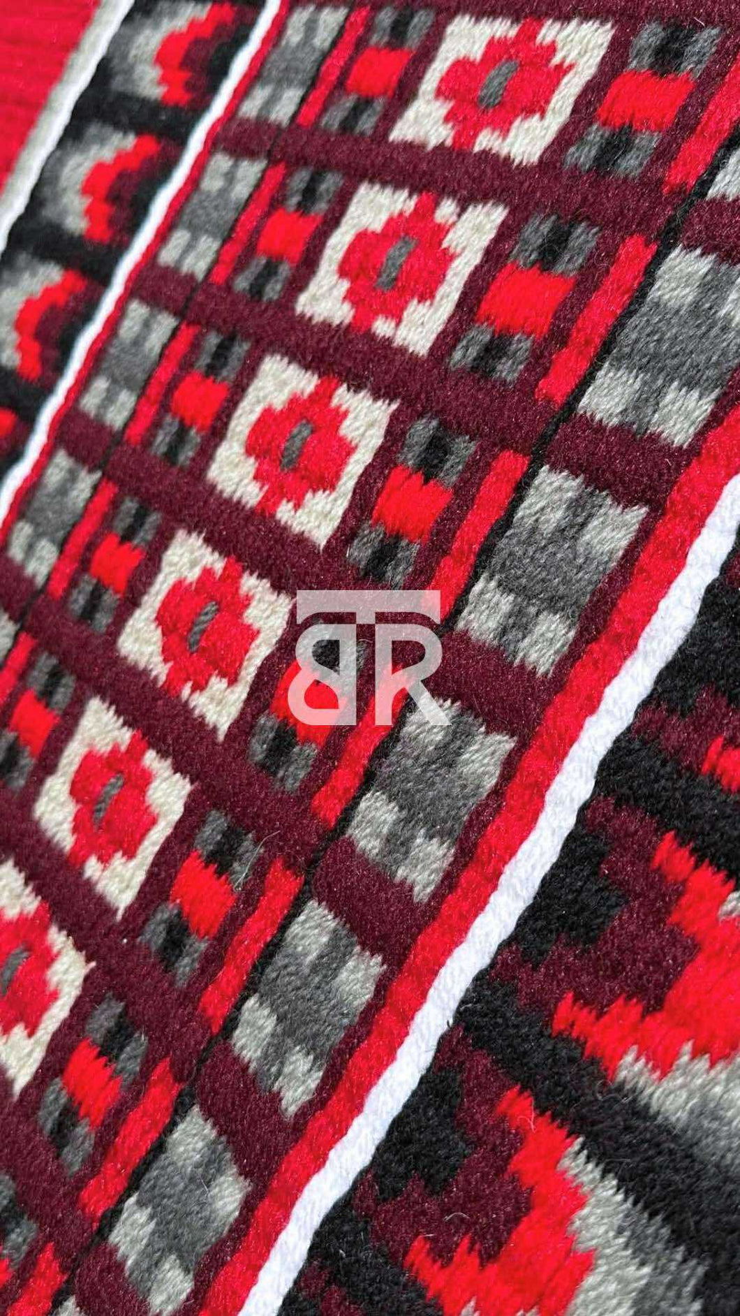 34 by 42 with stamped wear leathers. Please email us at backroadtradingcompany@gmail.com if you would like to custom order a blanket.