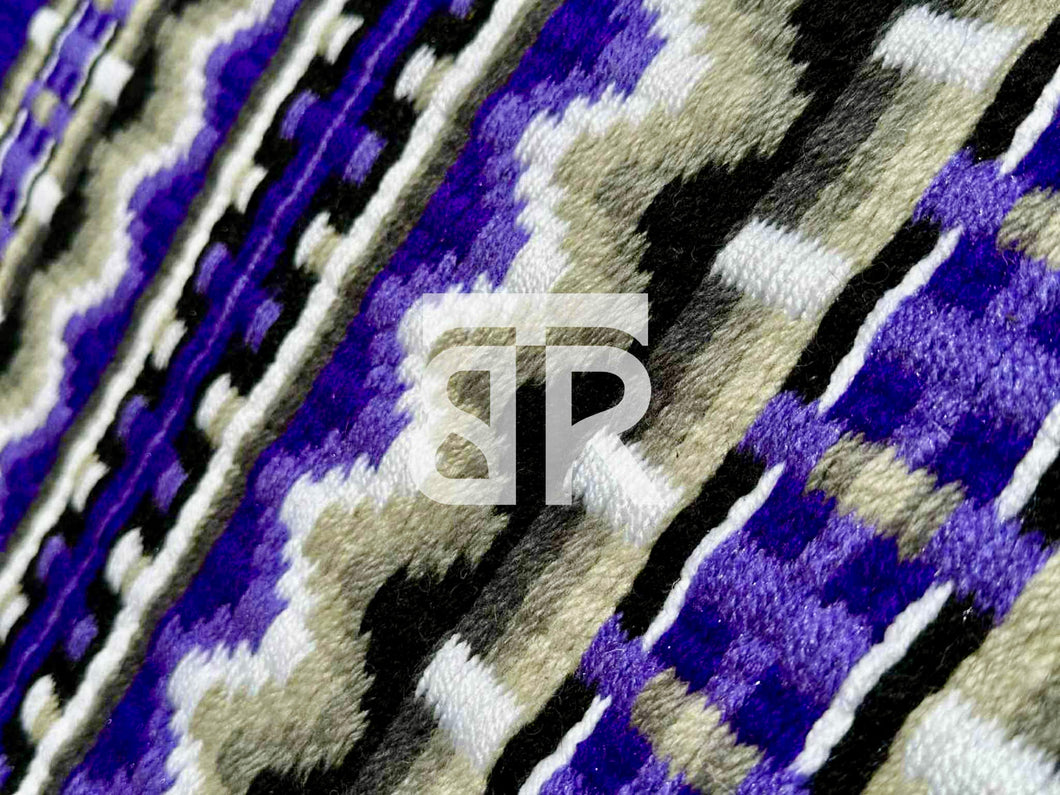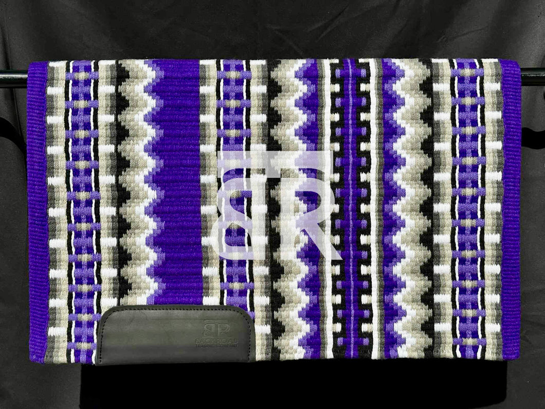 34 by 42 with stamped wear leathers. Please email us at backroadtradingcompany@gmail.com if you would like to custom order a blanket.