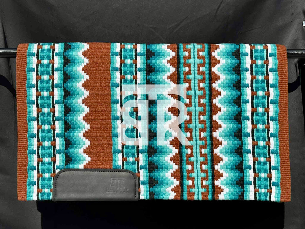 34 by 42 with stamped wear leathers. Please email us at backroadtradingcompany@gmail.com if you would like to custom order a blanket.