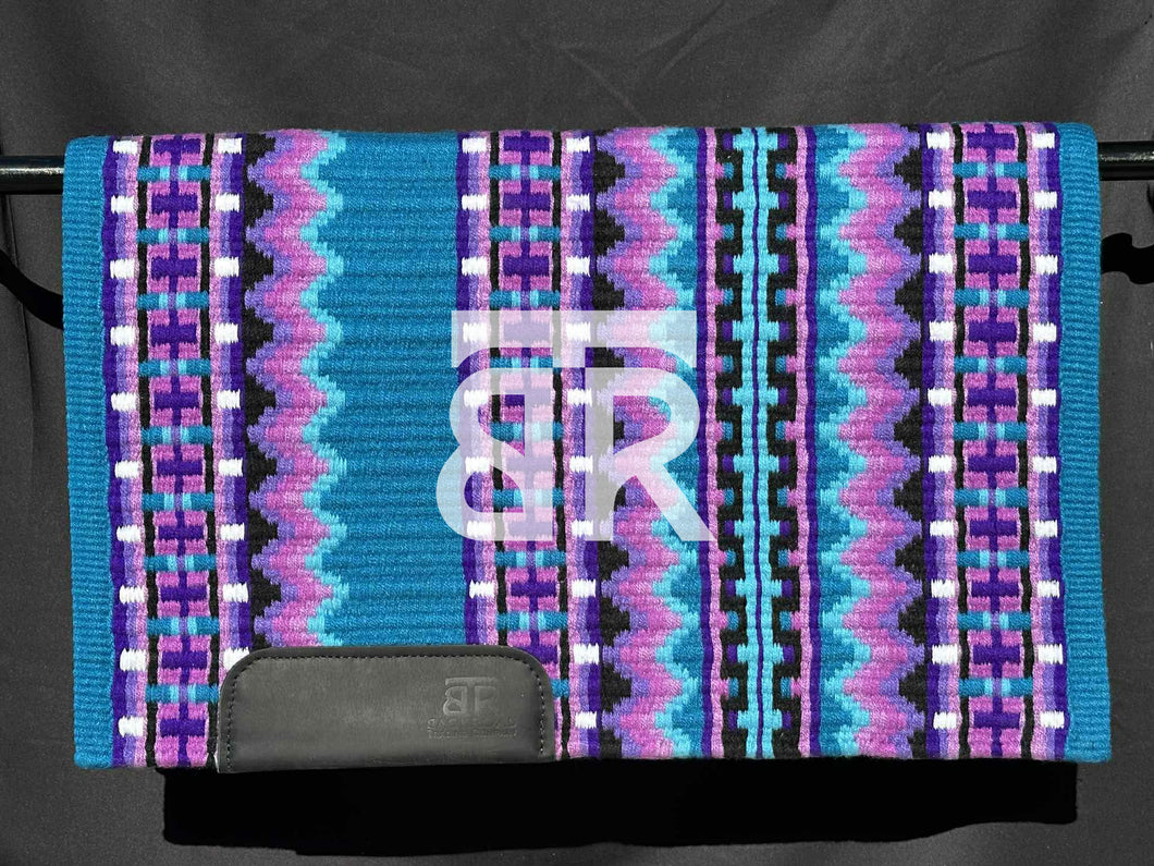34 by 42 with stamped wear leathers. Please email us at backroadtradingcompany@gmail.com if you would like to custom order a blanket.