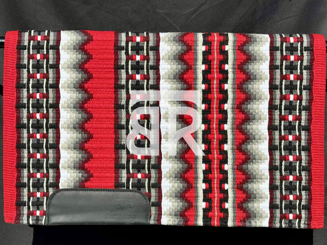 34 by 42 with stamped wear leathers. Please email us at backroadtradingcompany@gmail.com if you would like to custom order a blanket.