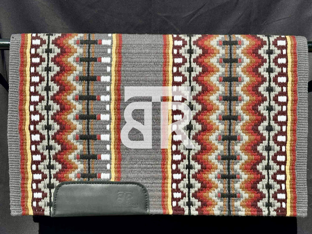 34 by 42 with stamped wear leathers. Please email us at backroadtradingcompany@gmail.com if you would like to custom order a blanket.